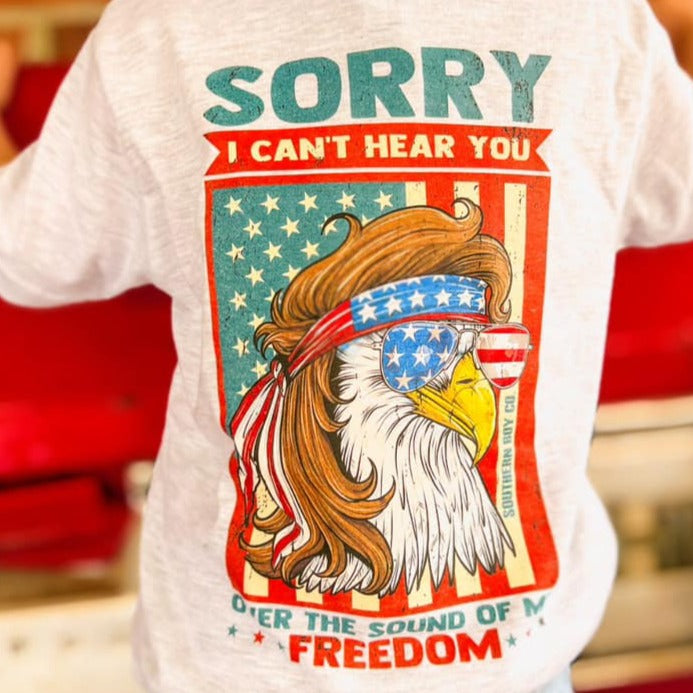The Sound Of My Freedom Boy's Short Sleeve Shirt by Southern Boy Co.®is a patriotic favorite for young ones who light up at the sound of fireworks and the smell of summer cookouts. It’s soft, comfortable, and easy to wear, whether they’re chasing a ball in the yard or running through sprinklers. It’s a shirt that feels like home.