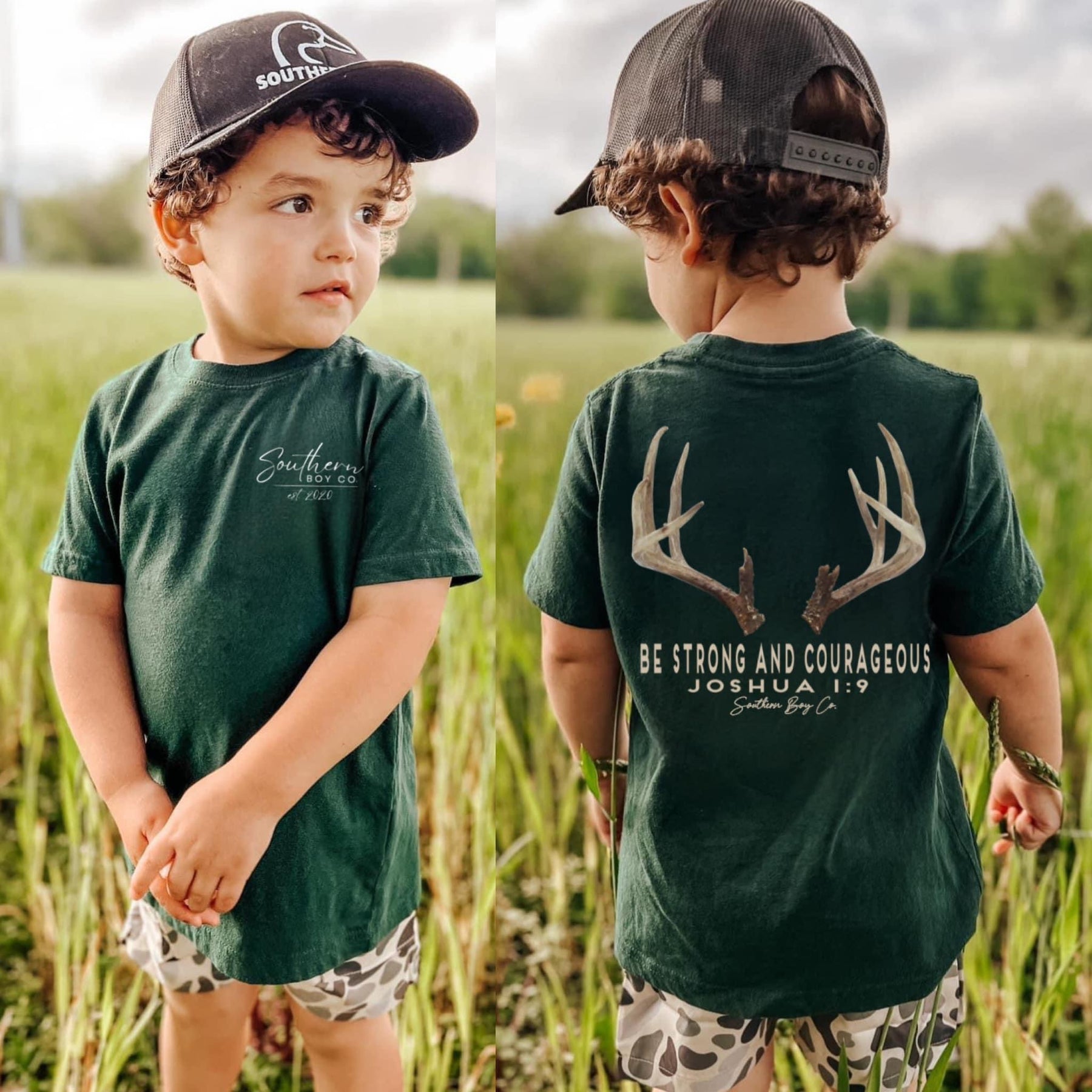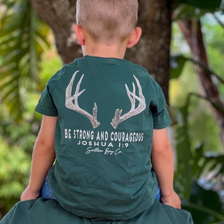 Strong And Courageous (Deer Antler) Short Sleeve Kids Tee